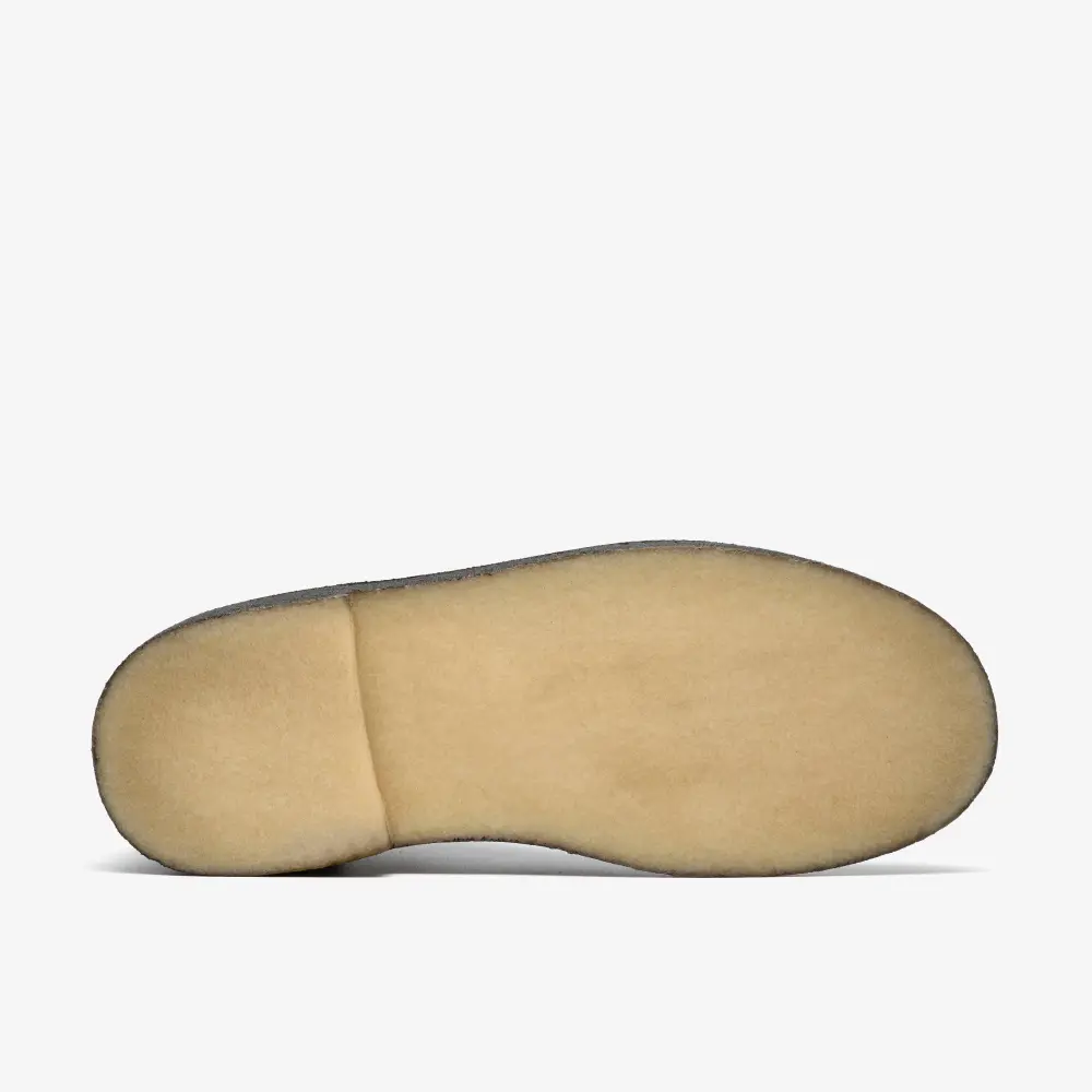 Designed for ease and style, it features a tonal back strap and heel pull loop, as well as a tonal elastic gusset for easy on-and-off wear. The natural smooth crepe sole with a black sole spray enhances both comfort and traction, making it ideal for everyday adventures.