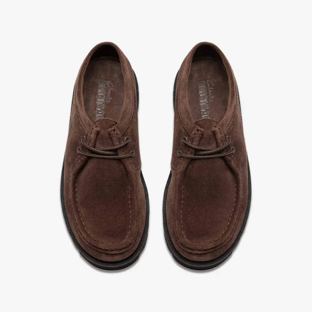 Crafted from premium dark brown suede uppers. The subtle Wallabee™ logo on the side panel adds a nod to its iconic roots, while the added detail of a webbing strip on the heel offers a modern twist.