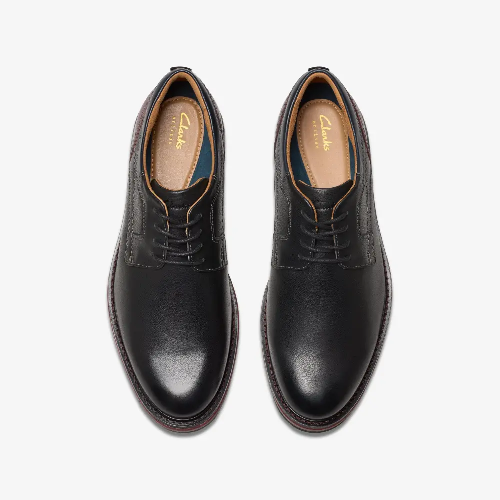 Men’s Monahan Plain Black Leather Oxford Shoes Clarks