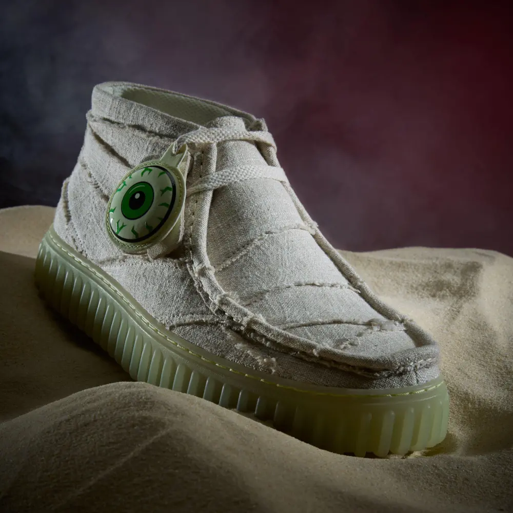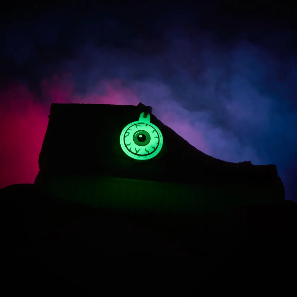 Torhill Hallow ushers in Halloween with limited-edition spooky design cues. We’ve crafted it with wrapped textile uppers that recreate the look of ancient Egyptian mummies and topped it with logo fobs – including a glow-in-the-dark, eyeball-shaped one. Underfoot, our signature ribbed outsole glows in the dark too, for maximum impact with every move.