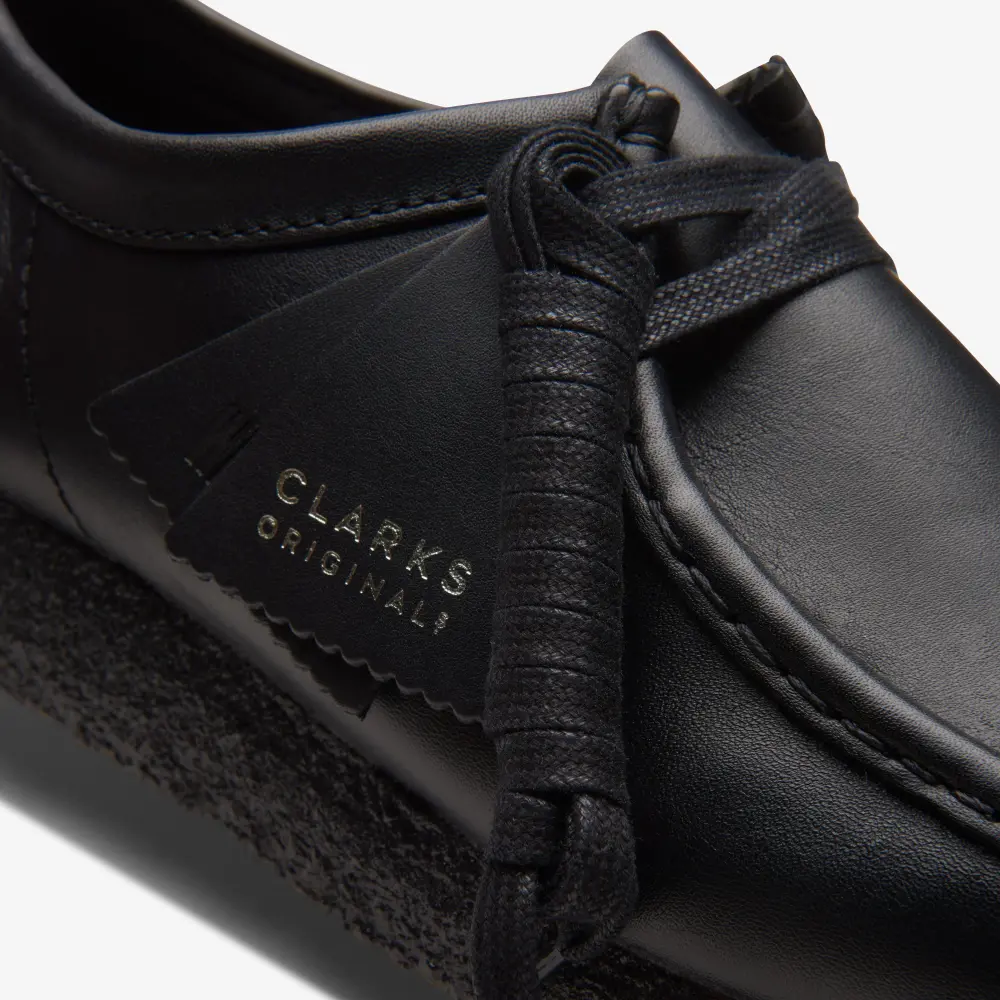 The Wallabee has become an iconic classic in our Clarks Originals collection across the globe thanks to its moccasin construction and structural silhouette. Featuring clean and simple lines, this comfortable lace-up style is crafted from black leather. The finishing touch is our signature crepe sole which continues to stand the test of time.