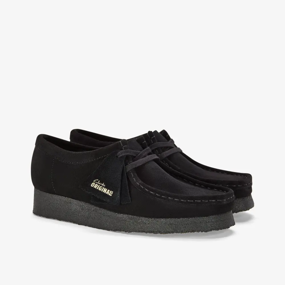 The Wallabee has become an iconic classic in our Clarks Originals collection across the globe thanks to its moccasin construction and structural silhouette. Featuring clean and simple lines, this comfortable lace-up style is crafted from black suede. The finishing touch is our signature crepe sole which continues to stand the test of time.