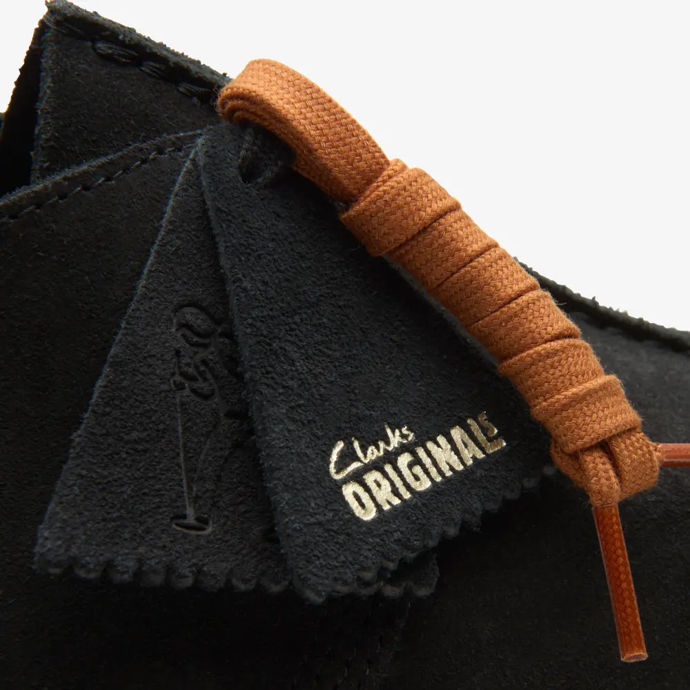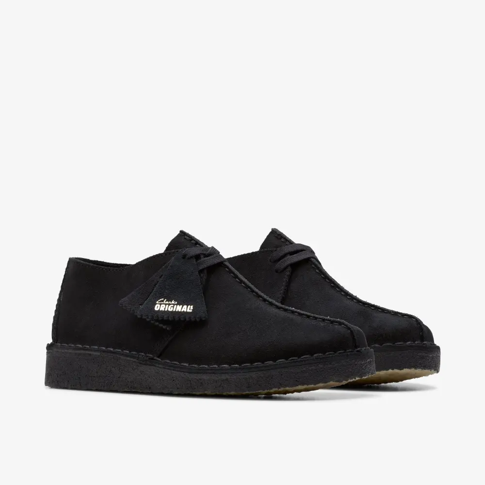 An icon crafted for everyday wear, the Desert Trek returns in timeless black ready for a season of ultra-versatile styling. Butter-soft suede uppers contrast perfectly with its natural crepe sole, while flat laces and our classic fobs lend a casual finish.
