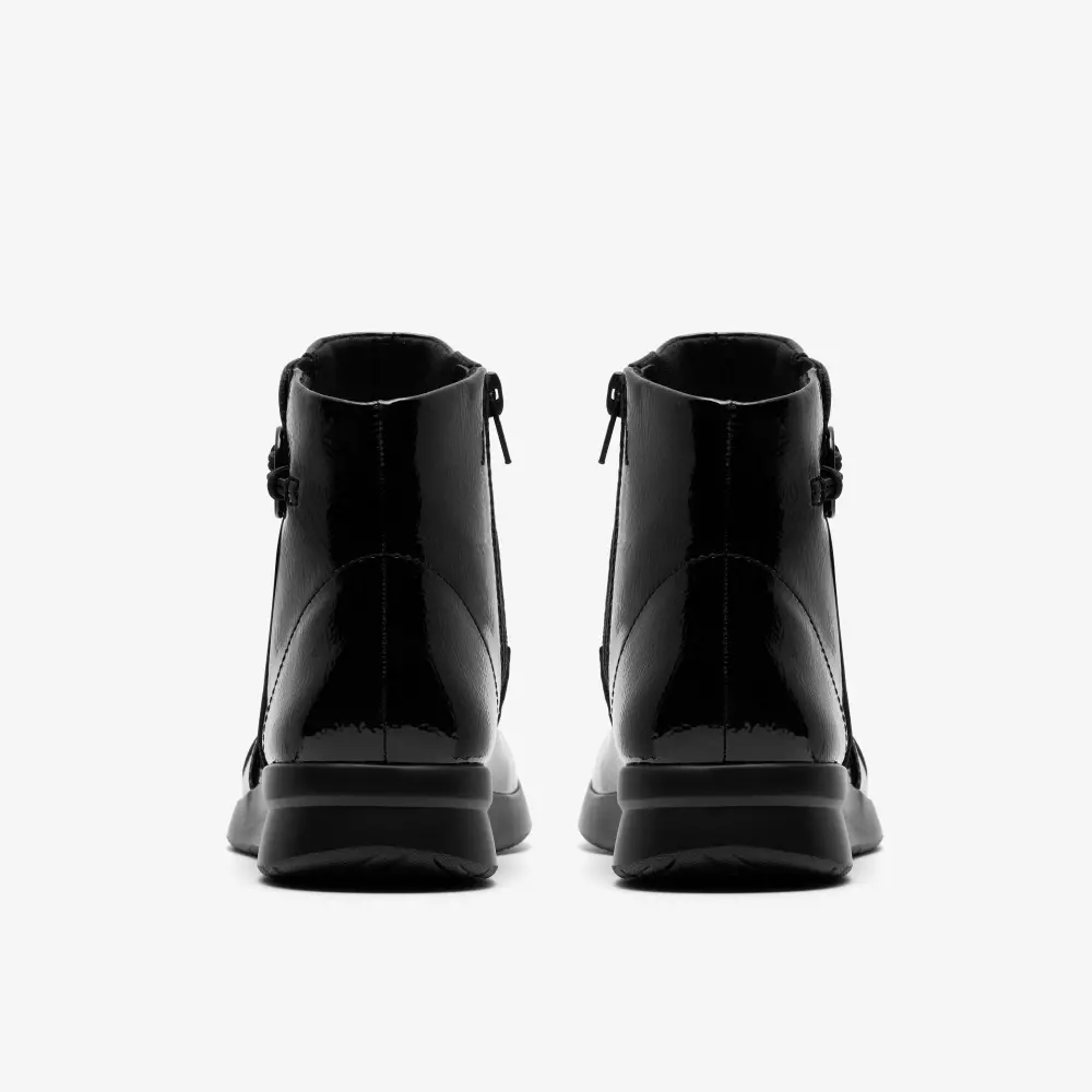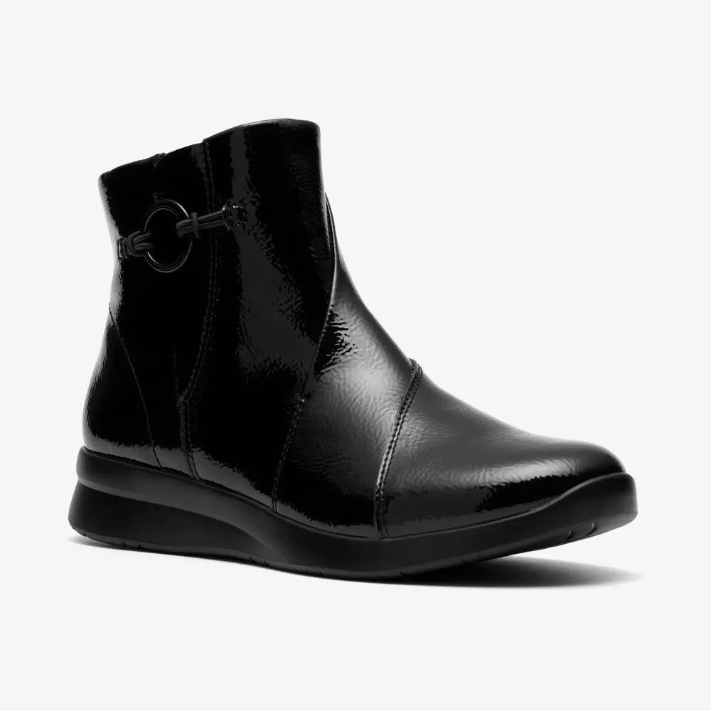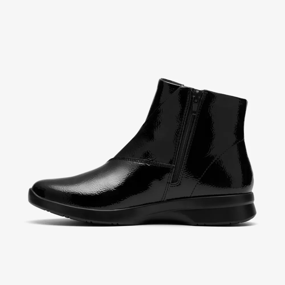 Womens Ellowyn Deva Black Crinkle Patent Ankle Boots
