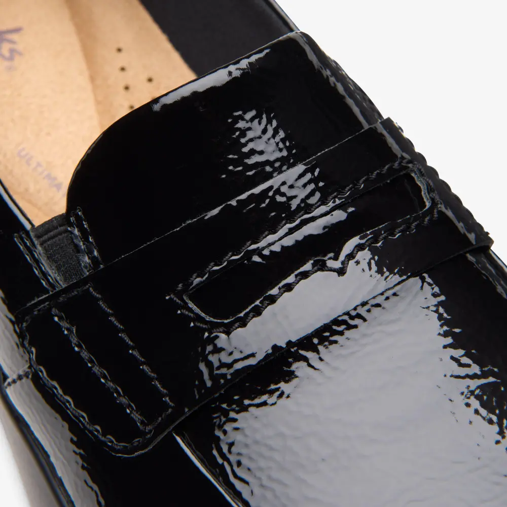 Womens Ellowyn Penny Black Crinkle Patent Slip Ons