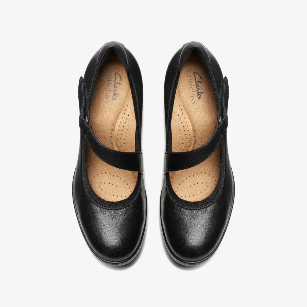 Crafted on a classic Mary Jane profile, our Emily2 Mabel heeled shoe combines a timeless look with modern edits. Smooth black leather uppers and stylish strap details wrap the foot perfectly, while our signature cushioned footbed and super-grippy sole support every step, minus the bulk.