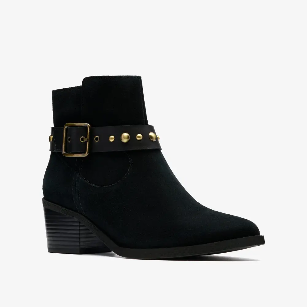 Womens Morzine Buckle Black Suede Ankle Boots