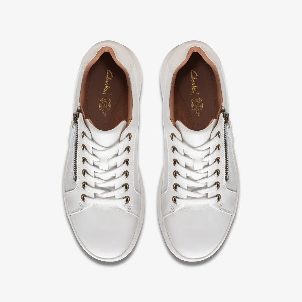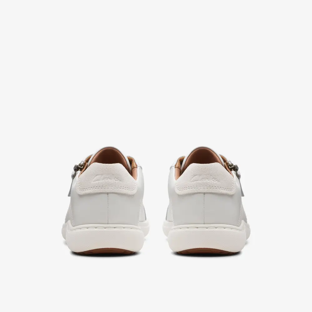 Stay light on your feet with the Nalle Lace. Supple white leather uppers bring sports-inspired style to Clarks' iconic craftmanship, resulting in a contemporary sneaker that's ideal for a modern life. Our supportive Contour Cushion footbed combines with a high-grip rubber sole for underfoot comfort on those busy days.