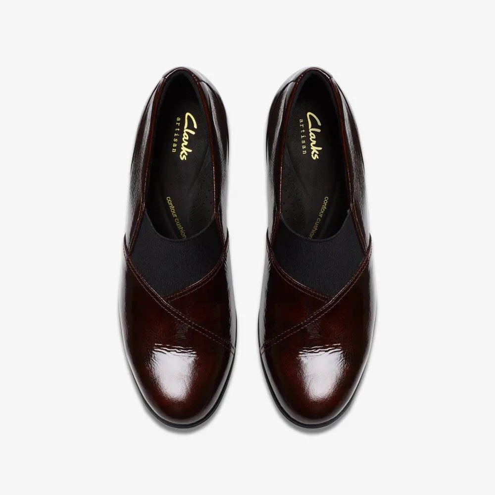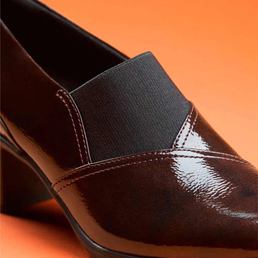 - Premium merlot patent leather upper
