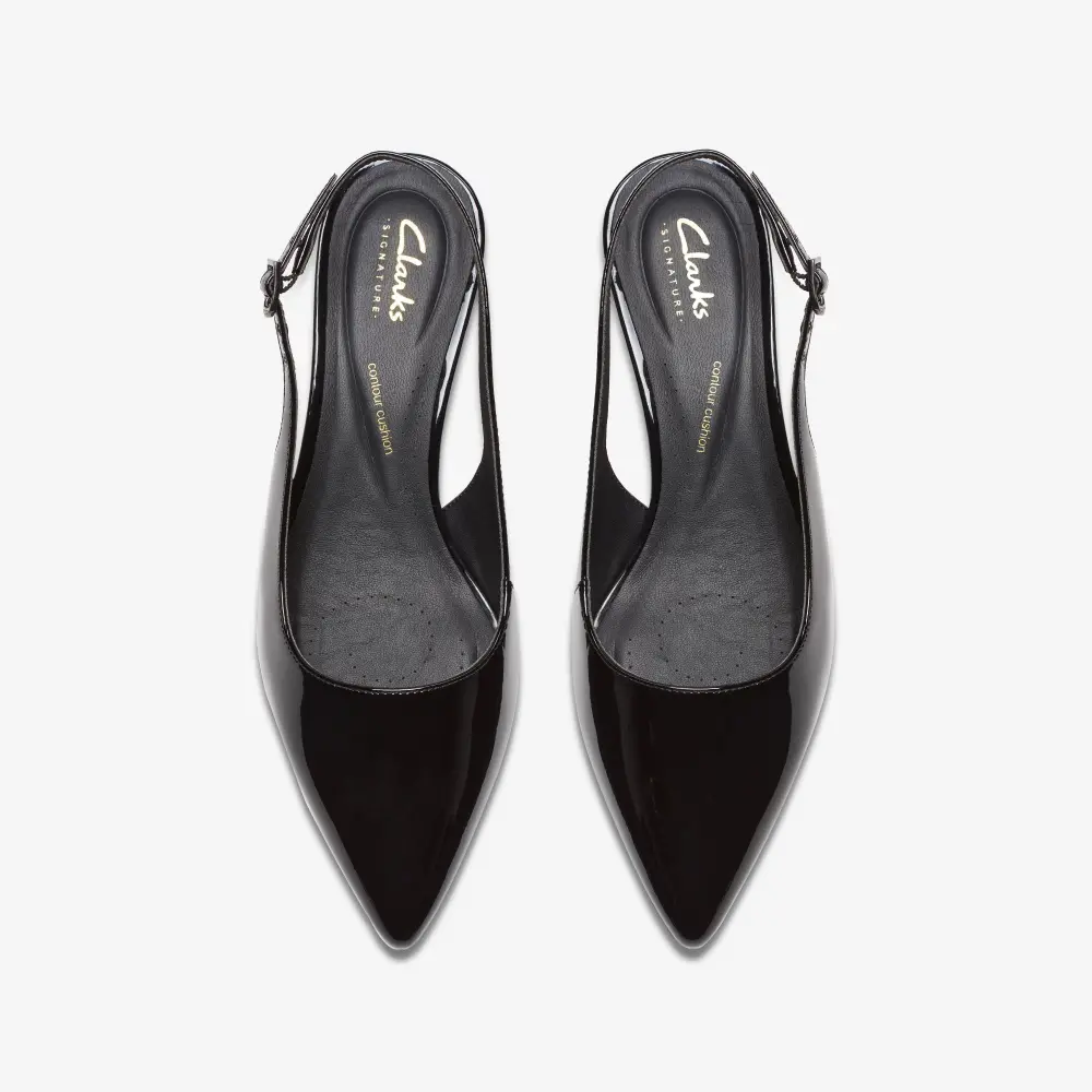 Zarey Sling is a modern take on a classic silhouette, perfect for any wardrobe. Combining a sculpted heel with a sleek point-toe shape, this shoe calls on glossy black leather for an elevated look. And with a Contour Cushion footbed and flexible rubber sole, it guarantees total round-the-clock support.
